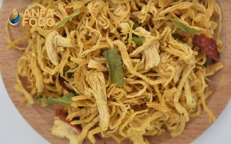 - Các sợi khô gà có kích thước đều nhau, khô ráo và không bị cứng hay cháy.